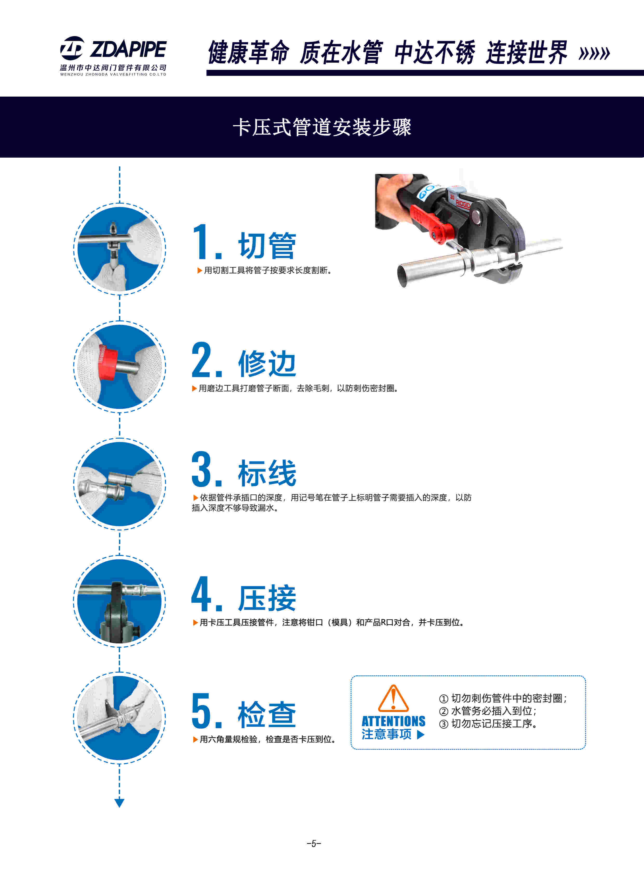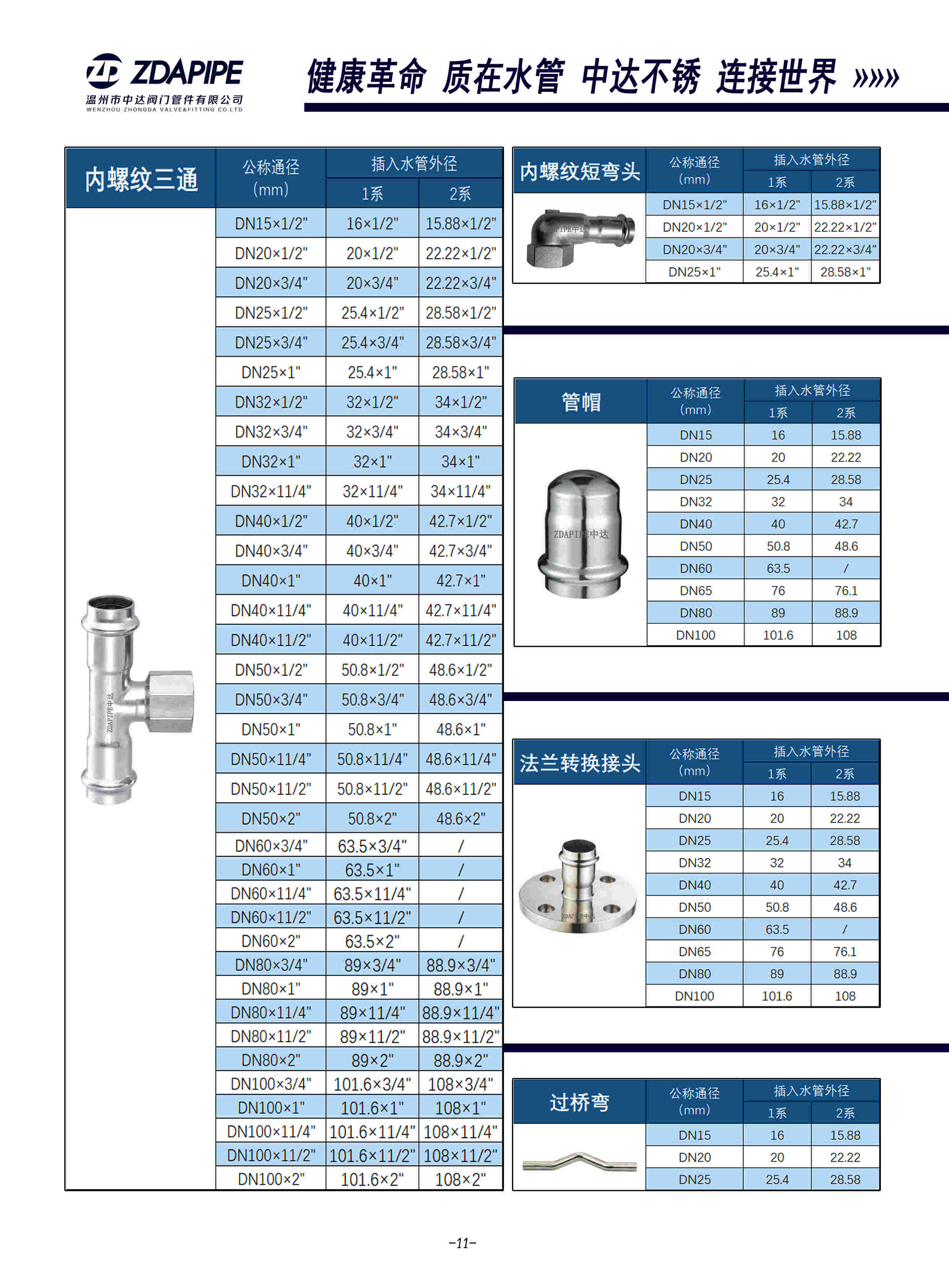 - 用途范圍:雙卡壓管件廣泛應(yīng)用于市政自來(lái)水管道工程,新建小區(qū)直飲水工程,工業(yè)與民用 建筑、賓館、公共建筑、睬氣供應(yīng)等分供水系統(tǒng)。給水,排水,二次供水,太陽(yáng)能,水務(wù)工程,自來(lái)水公司,醫(yī)院,學(xué)校,酒店,賓館,天然氣工程,自來(lái)水工程,直飲水工程,家裝水管工程,工業(yè)管道工程,水處理工程,清潔能源工程,綠色能源,健康革命,質(zhì)在水管,中達(dá)不銹,連接世界。